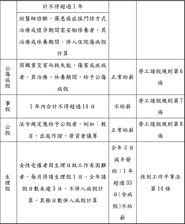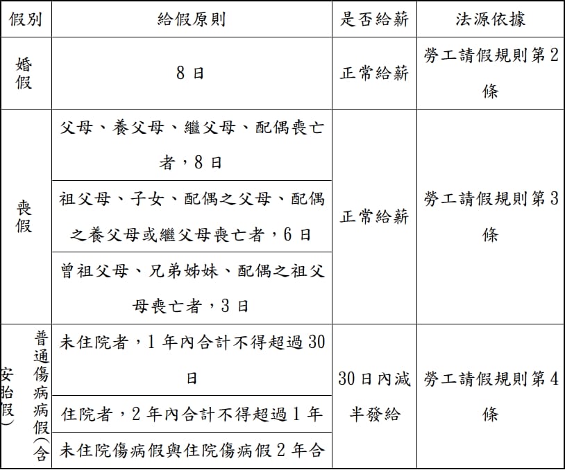 勞工請假附表:(婚假、喪假、病假、公傷病假、事假)