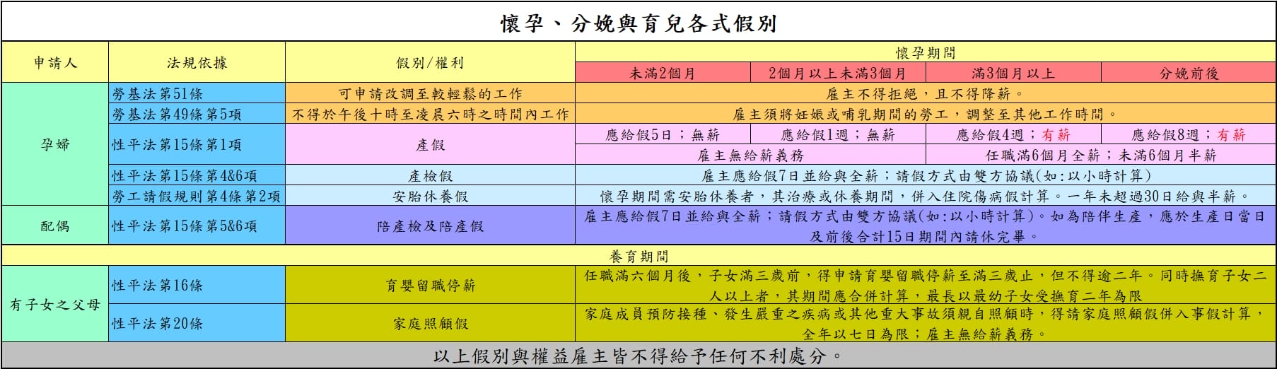 注意:上述所有權益及假別,雇主皆不得給與任何不利處分。