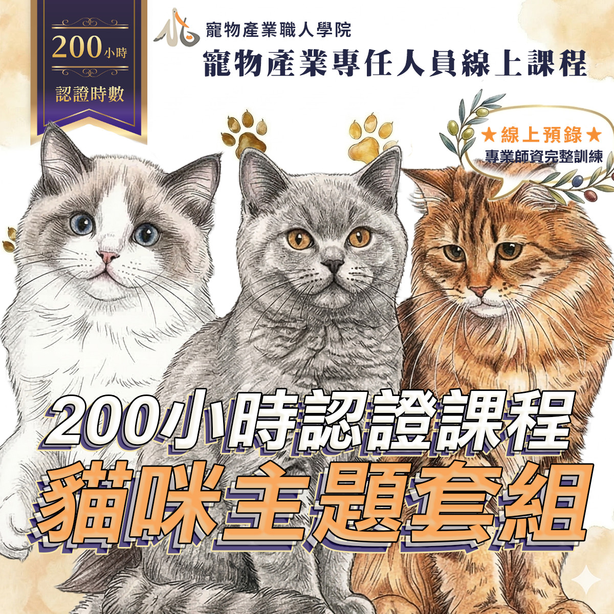 200小時課程-貓貓套組 包含以下課程內容: